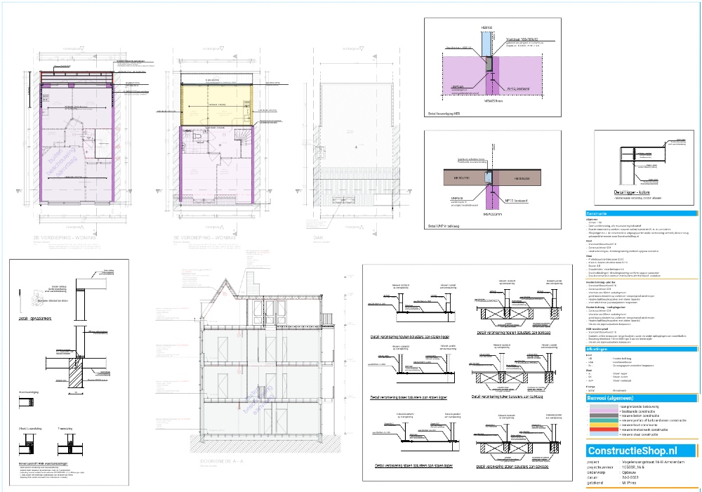 Op detailtekeningen worden verankeringen, gordingversterkingen en aansluitingen zorgvuldig uitgewerkt. Hiermee voorkomt u dat de nieuwe dakconstructie gaat werken of problemen veroorzaakt in het bestaande dakvlak.