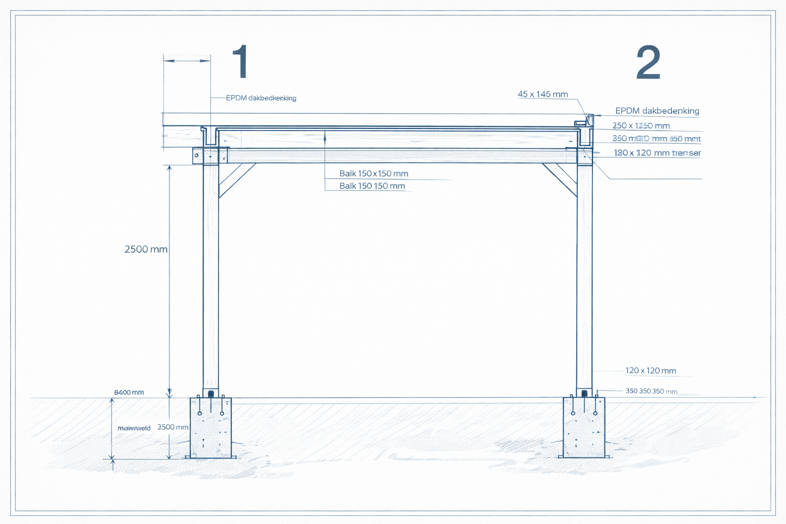 Constructietekening carport zijkant