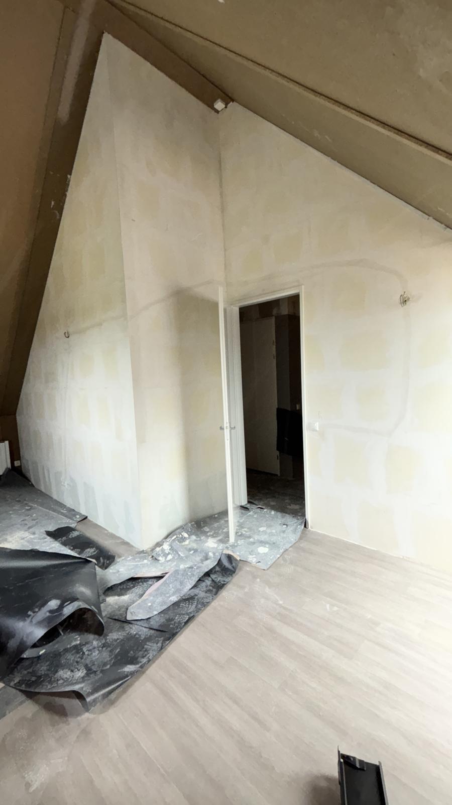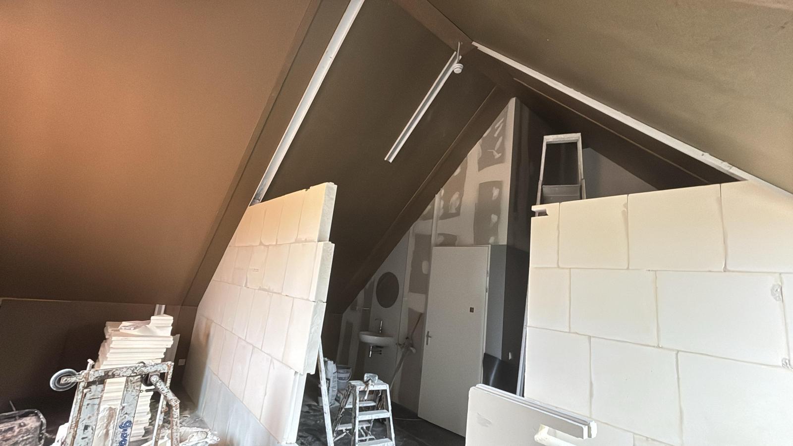 Op deze foto’s ziet u hoe een open zolderruimte verandert in twee aparte kamers. Eerst is de kamer nog leeg en vol bouwmaterialen, maar stap voor stap worden de wanden opgebouwd. De deuropeningen komen mooi in beeld en de nieuwe indeling wordt duidelijk zichtbaar. Dit laat goed zien wat tussenwand plaatsen slaapkamer kan doen: van één grote ruimte maakt u twee rustige, praktische kamers. Zodra de wanden zijn afgewerkt, voelt de verdieping meteen logischer en prettiger aan. Zo geeft tussenwand plaatsen slaapkamer uw woning snel extra ruimte en rust.